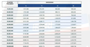 Supaya lebih mudah, bisa cek tabel angsuran KUR Mikro BRI berikut ini dengan plafon Rp15 juta hingga Rp100 juta: