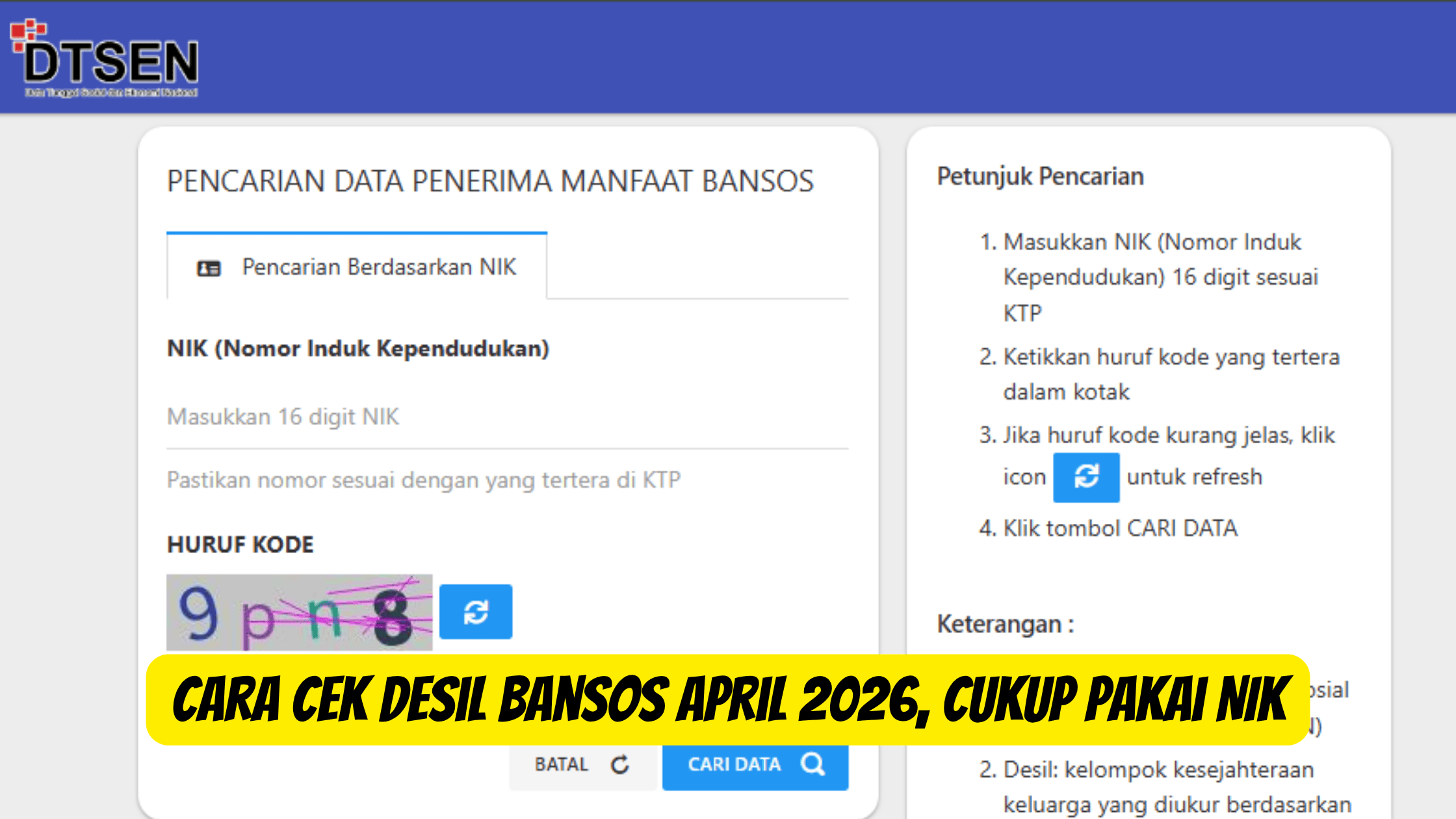 Seiring dengan kecanggihan teknologi yang ada saat ini, cara cek desil bansos pada April 2026 semakin praktis tanpa harus datang langsung ke dinas sosial karena dapat dilakukan secara online dengan menggunakan Nomor Induk Kependudukan (NIK).