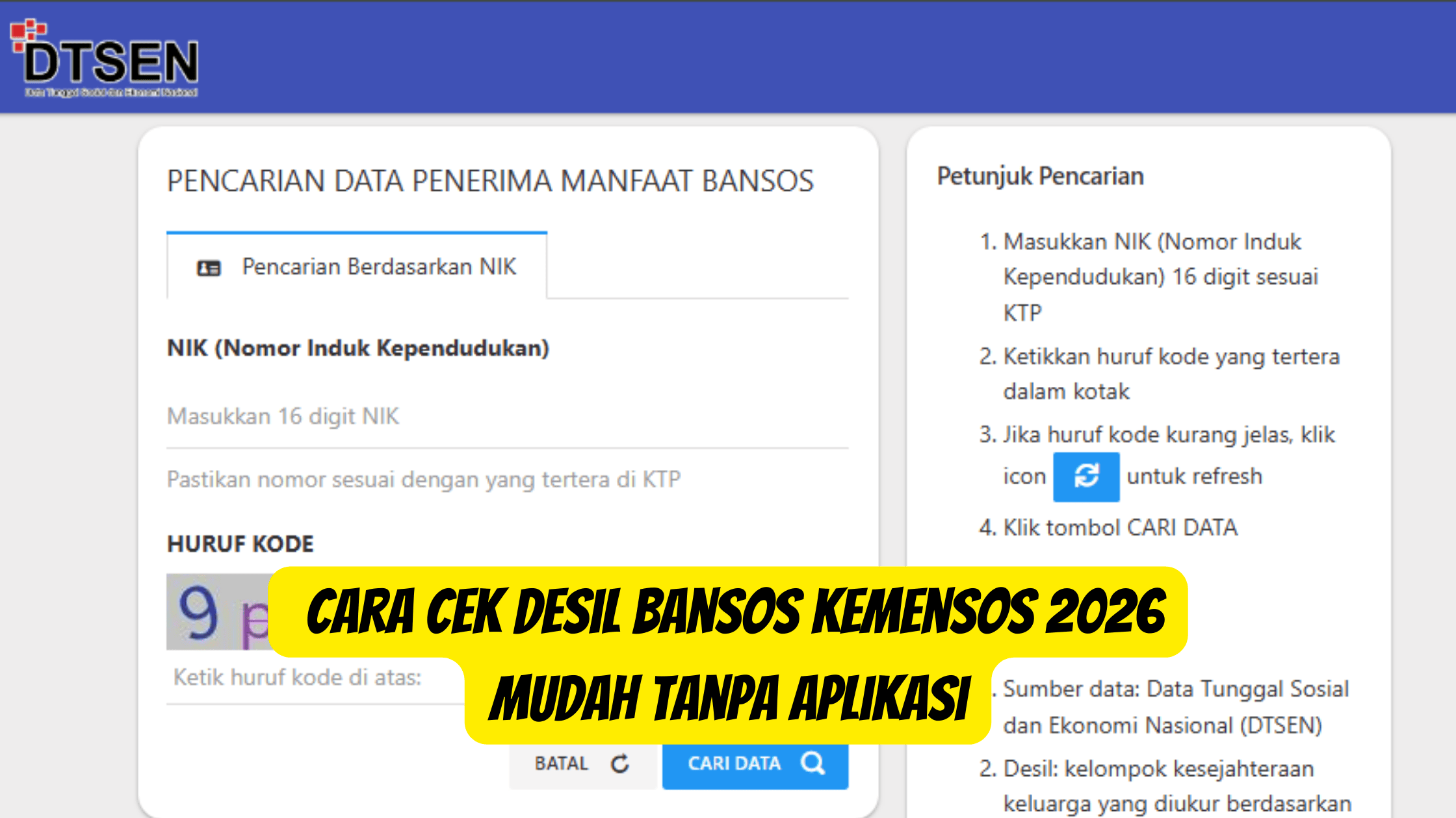 Baca juga: Cek Penerima Bansos 2026 dan Desil DTSEN dengan Mudah Menggunakan NIK