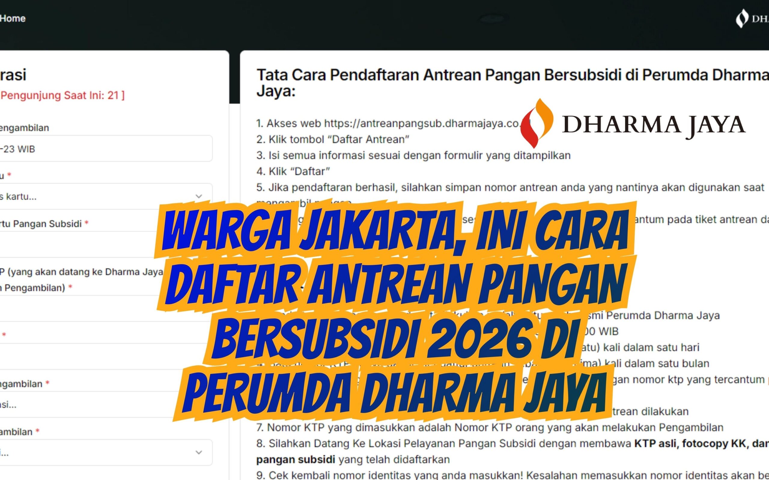 Dilansir dari situs Perumda Dharma Jaya ini cara daftar Antrean Pangan Bersubsidi 2026 di Perumda Dharma Jaya :