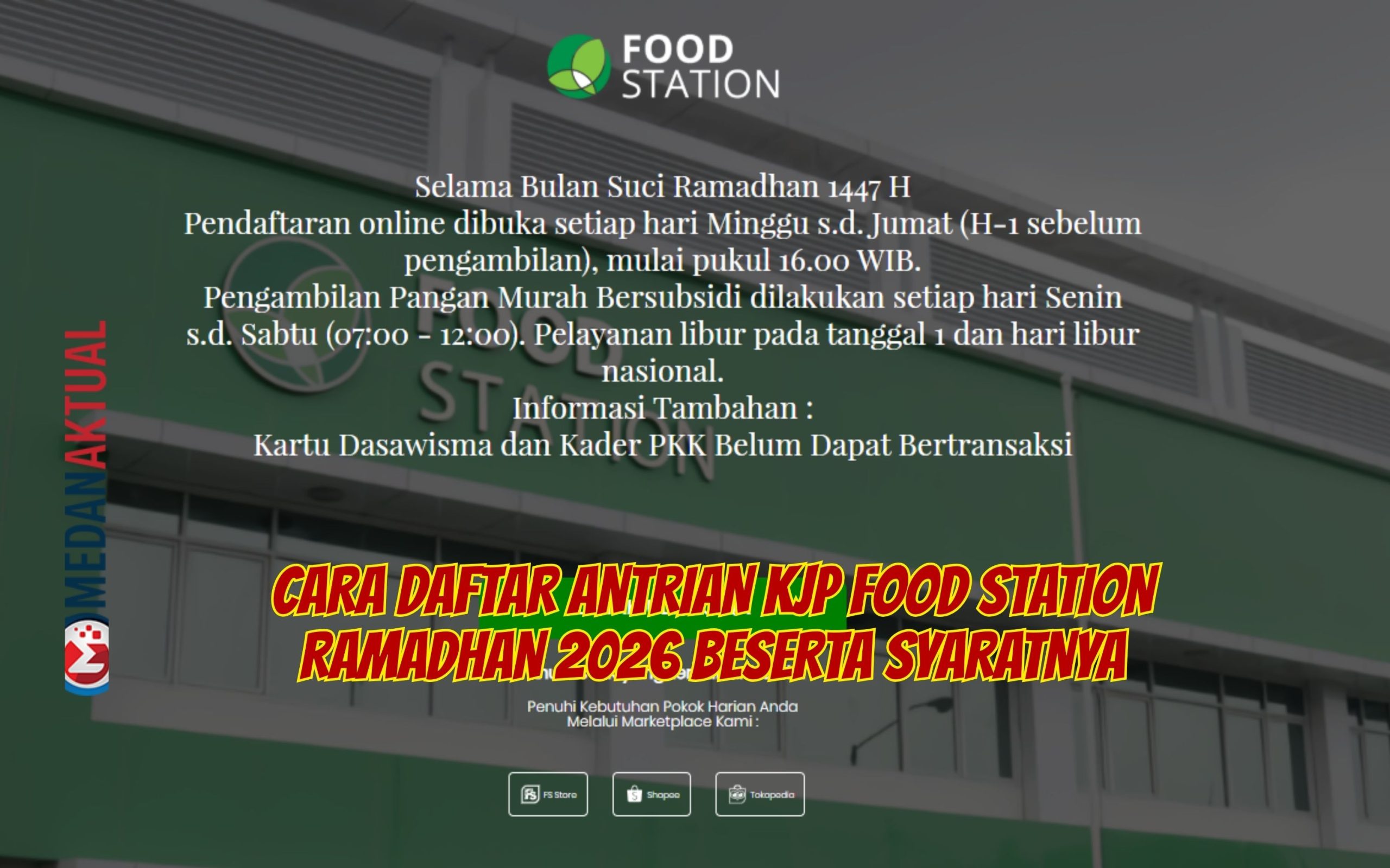 Dilansir dari website https://pmb.foodstation.co.id/ selama Bulan Ramadhan yang suci 1447 H pendaftaran antrian lewat online dibuka setiap hari dari Minggu hingga Jumat (H-1 sebelum pengambilan), mulai pukul 16. 00 WIB.