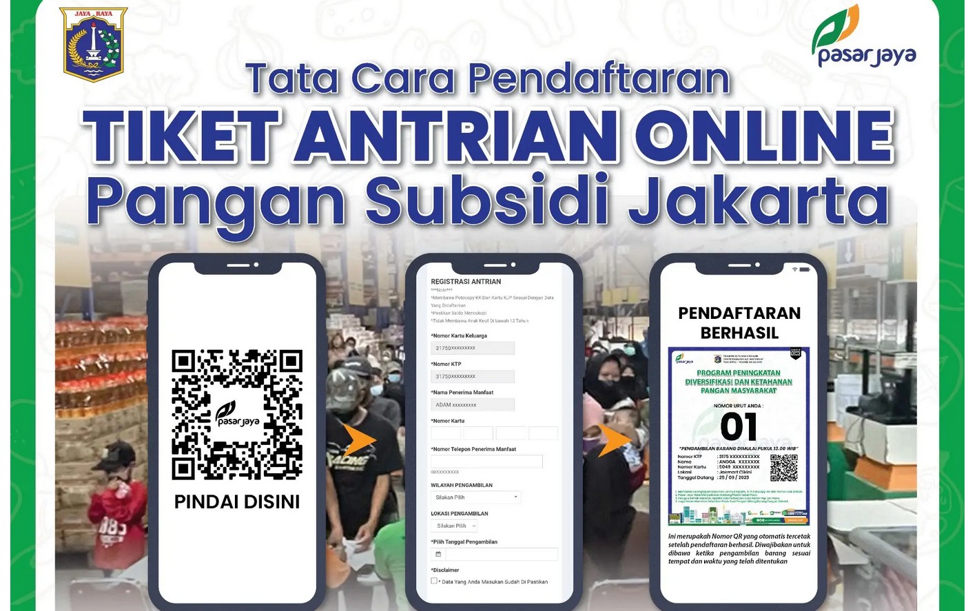• Pendaftaran hanya berlaku untuk pengambilan di Gerai Pangan Bersubsidi Food Station Tjipinang Jaya.