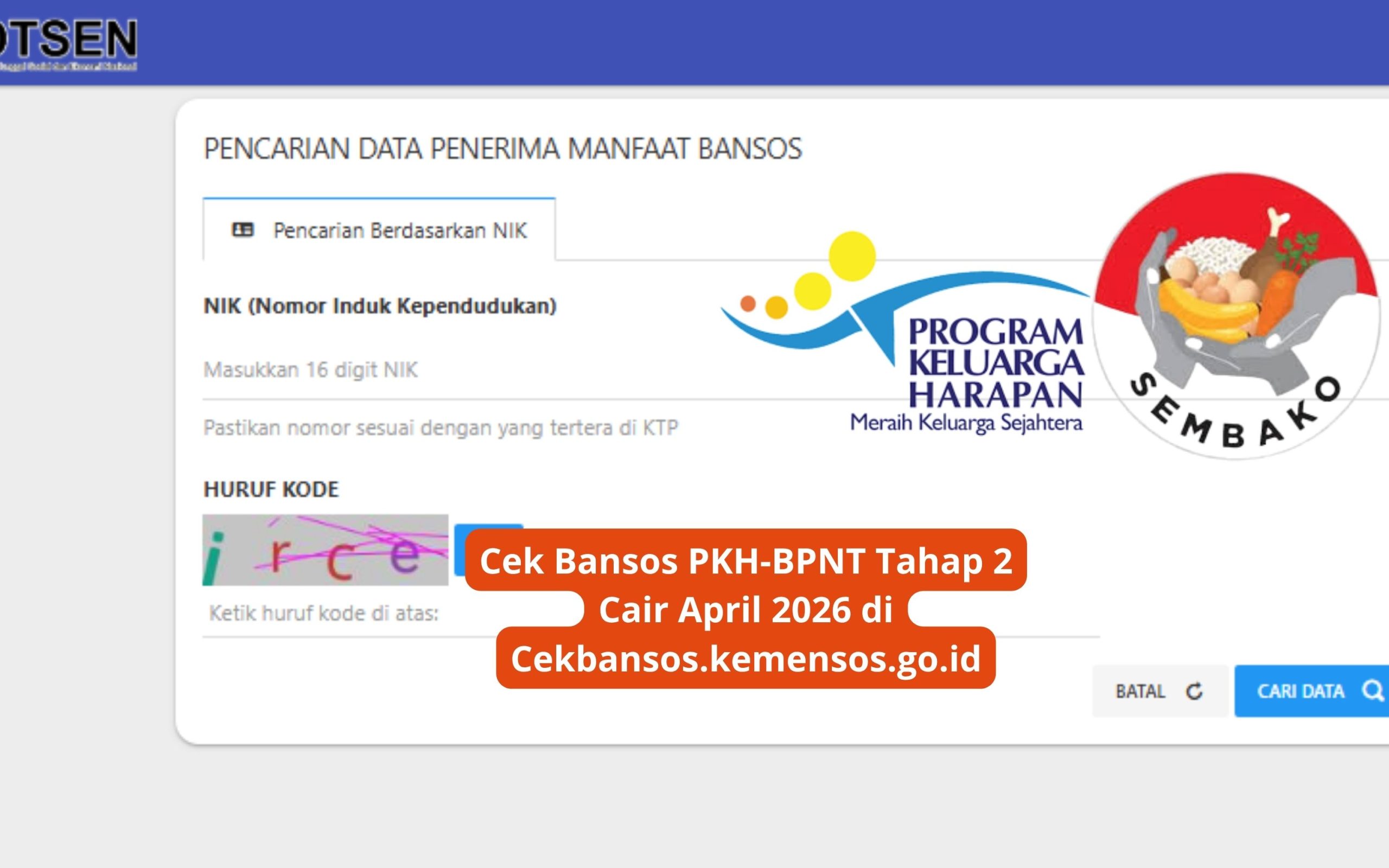 Cek Bansos PKH-BPNT Tahap 2 Cair April 2026 di Cekbansos.kemensos.go.id
