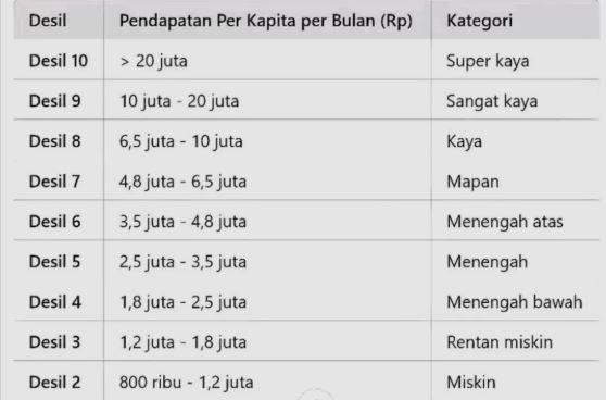 - Desil 6 – 10: Kelompok menengah hingga mampu. Umumnya tidak menjadi prioritas atau sasaran penerima bantuan sosial pemerintah.