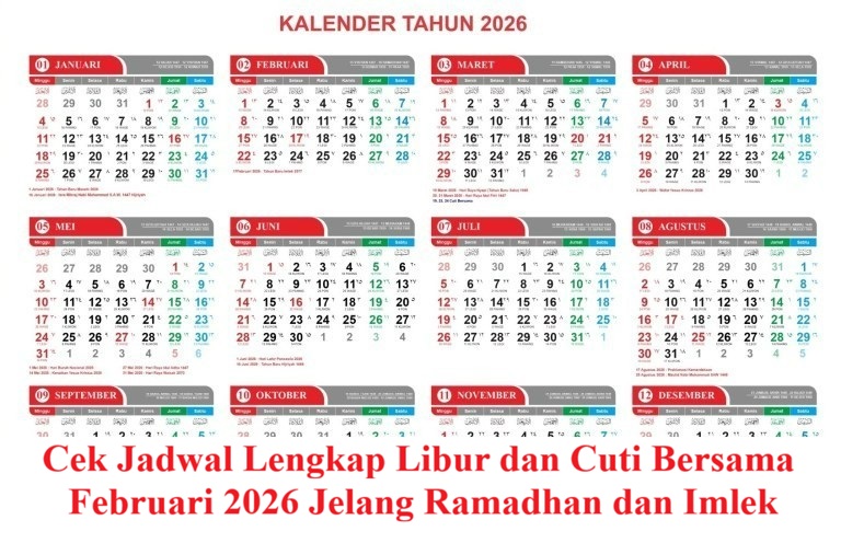 Menjelang bulan suci Ramadhan 2026, masyarakat Indonesia mulai menyiapkan diri untuk ibadah puasa. Salah satu informasi yang paling dicari adalah jadwal libur Februari 2026 dan perkiraan libur Lebaran 2026.