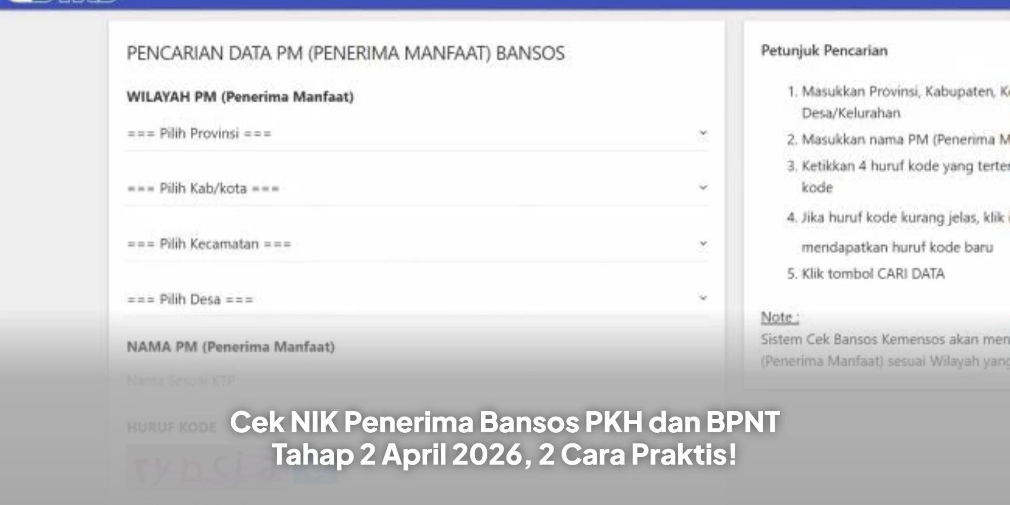 Masyarakat bisa mengecek NIK penerima bansos PKH dan BPNT Tahap 2 April 2026 dengan mudah melalui situs resmi Kemensos atau aplikasi Cek Bansos, untuk memastikan nama mereka terdaftar dan mengetahui jenis serta besaran bantuan.