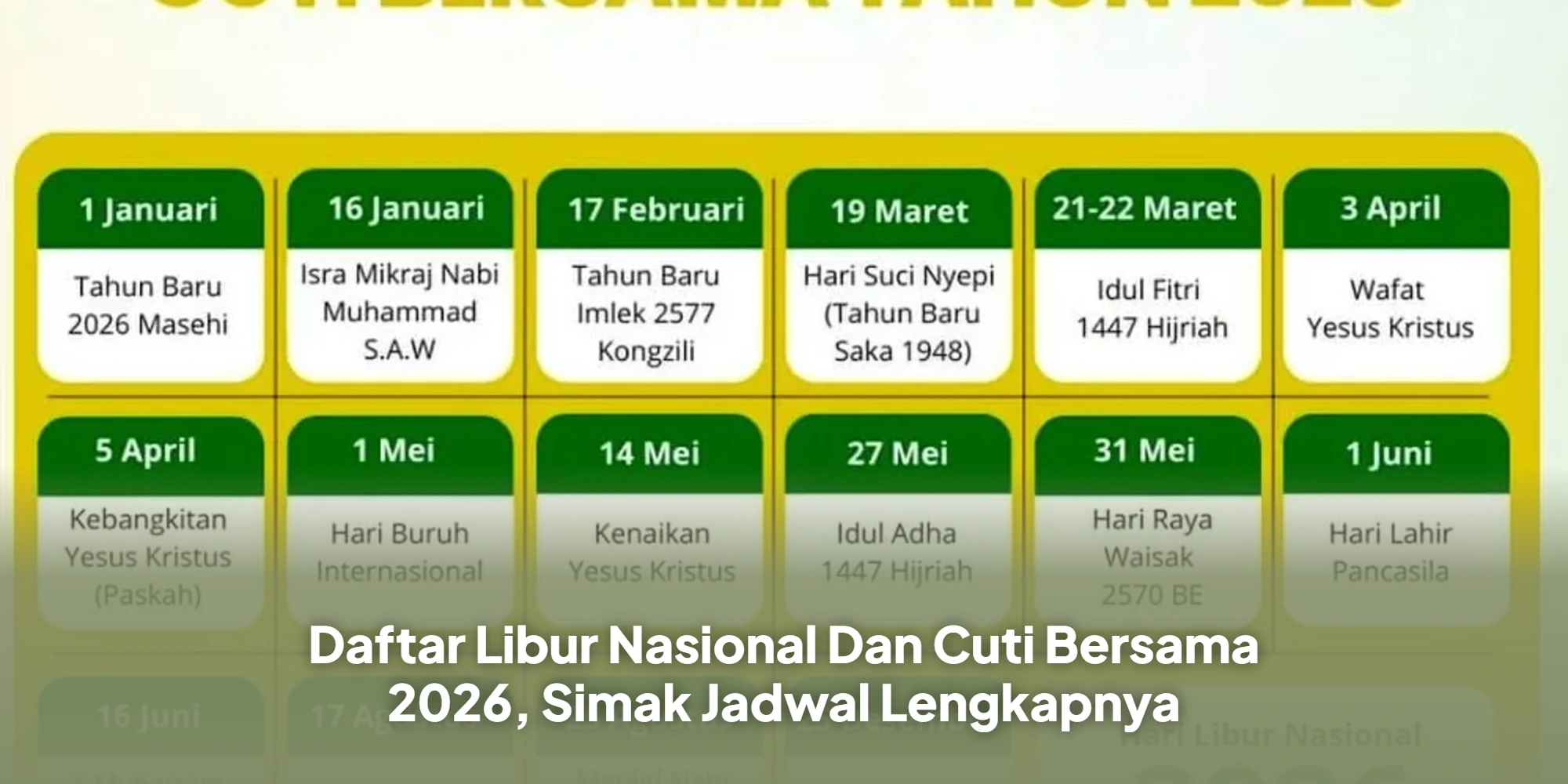 • Minggu, 31 Mei 2026: Hari Raya Waisak 2570 BE