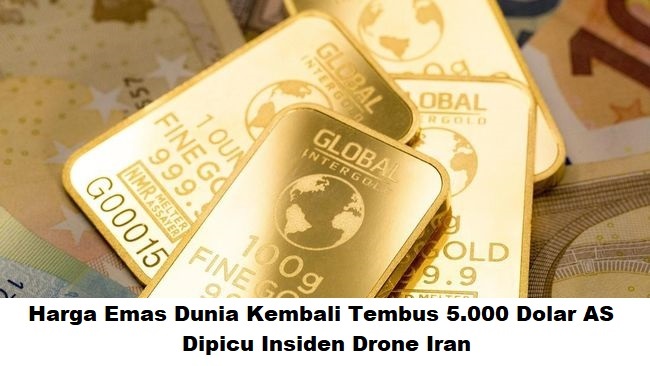 Harga emas dunia kembali menguat dan menembus level 5.000 dolar AS per ons seiring meningkatnya ketegangan geopolitik setelah insiden drone Iran di Laut Arab.