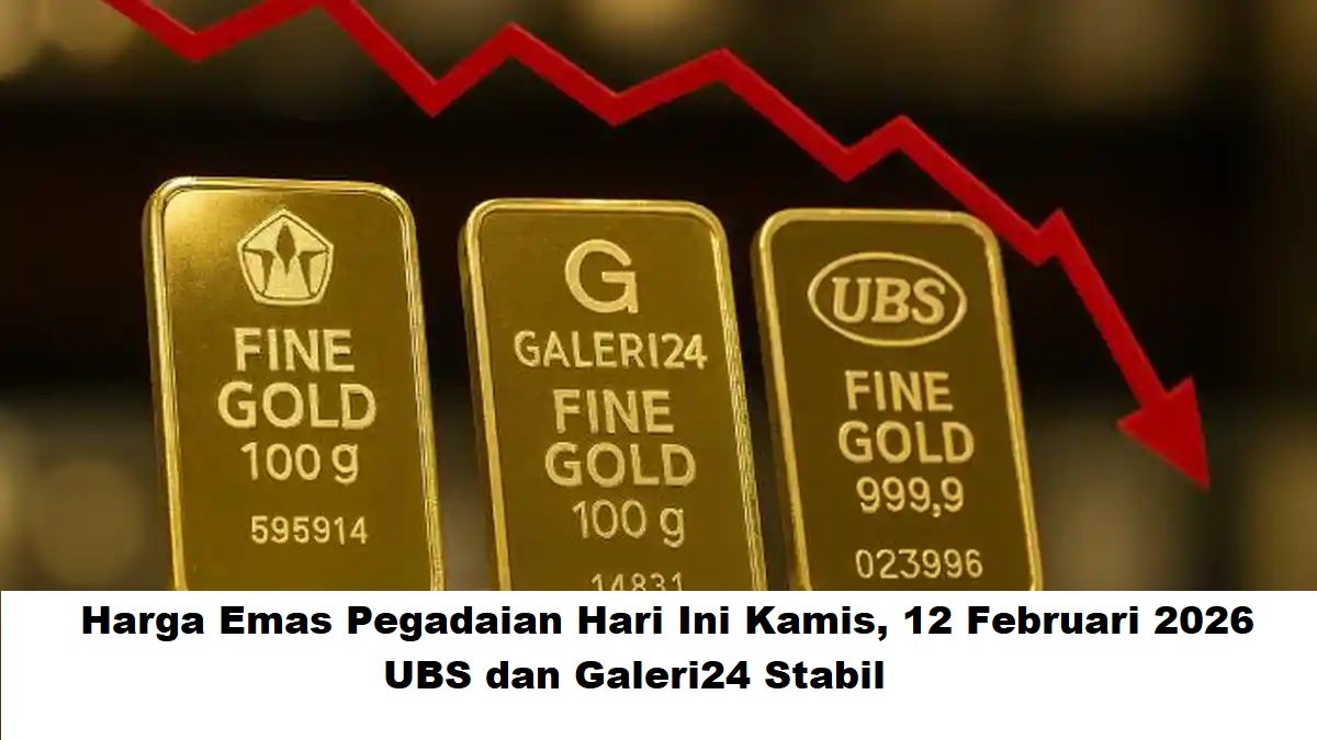 Harga emas Pegadaian hari ini, Kamis 12 Februari 2026, terpantau masih stabil. Berdasarkan laman resmi Sahabat Pegadaian yang diakses pukul 07.57 WIB, harga emas batangan UBS dibanderol Rp3.002.000 per gram, sedangkan Galeri24 berada di level Rp2.987.000 per gram.