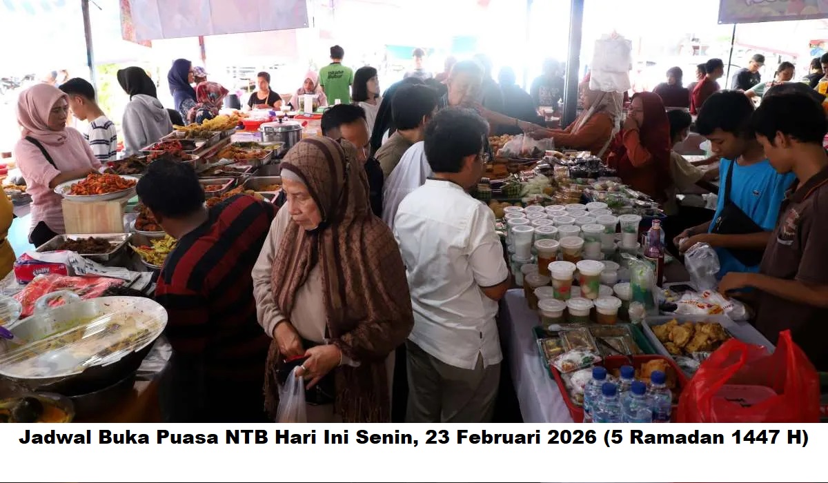 Umat Islam di wilayah Nusa Tenggara Barat (NTB) dapat menyimak jadwal buka puasa pada hari ini Senin, 23 Februari 2026 atau bertepatan dengan 5 Ramadan 1447 H.