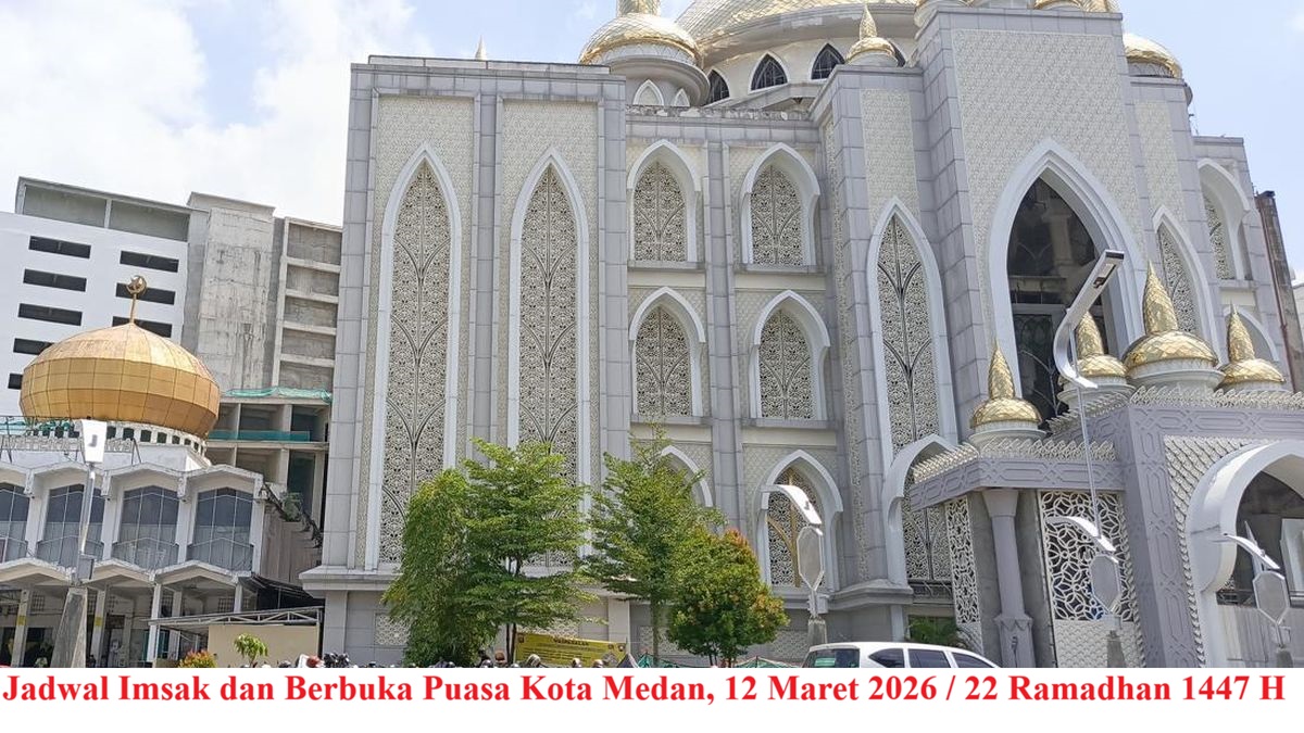 Pada hari Kamis, 12 Maret 2026, umat Muslim di Kota Medan menjalankan ibadah puasa pada hari ke‑22 di bulan suci Ramadhan 1447 Hijriah. Waktu berbuka puasa ditandai dengan adzan Maghrib, yang menandai berakhirnya puasa setelah menahan lapar dan dahaga sejak terbit fajar hingga Maghrib.
