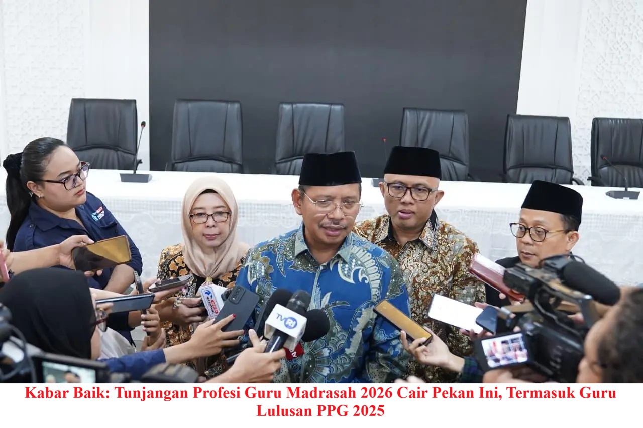 Kabar baik bagi guru madrasah datang dari Kementerian Agama (Kemenag). Tunjangan Profesi Guru (TPG) Madrasah 2026 mulai dicairkan secara bertahap mulai pekan ini, termasuk bagi lulusan Pendidikan Profesi Guru (PPG) 2025. Dilansir dari sulsel.kemenag.go.id, Direktur Jenderal Pendidikan Islam, Amien Suyitno, menjelaskan bahwa pencairan TPG dilakukan bersamaan dengan percepatan penerbitan Surat Keputusan Analisis Kelayakan Penerima Tunjangan (SKAKPT) bagi guru yang memenuhi persyaratan administrasi. Proses ini dimaksudkan agar hak guru madrasah bisa segera disalurkan.