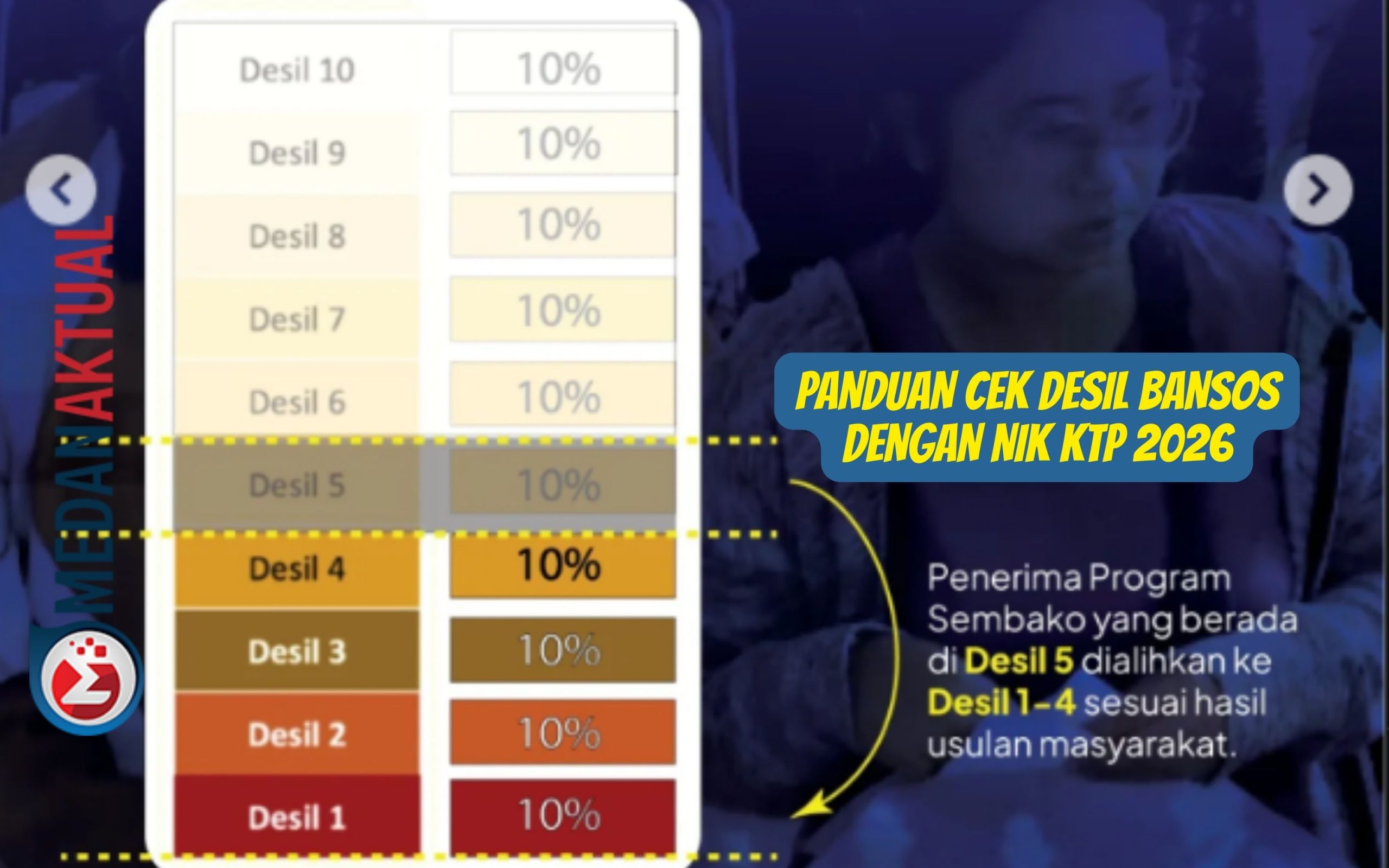 Tahukah kamu, untuk cek desil bansos sangat mudah, karena cukup menggunakan NIK KTP kamu dapat mengetahui desil berapa kamu. Dilansir dari pusdatinkesos, untuk tahun 2026 triwulan 1 , terdapat perubahan kriteria desil bansos reguler seperti PKH, BPNT sert PBI-JK. Kemudian, bansos untuk tahap 1 2026 disalurkan mulai Februari 2026 secara bertahap. Sehingga , masyarkaat perlu cek desil bansos untuk mengetahui kelayakan menerima bansos 2026 tahap 1. Berikut ini, terdapat panduan untuk cek desil bansos 2026 dengan mudah di hp dengan menggunakan NIK KTP.