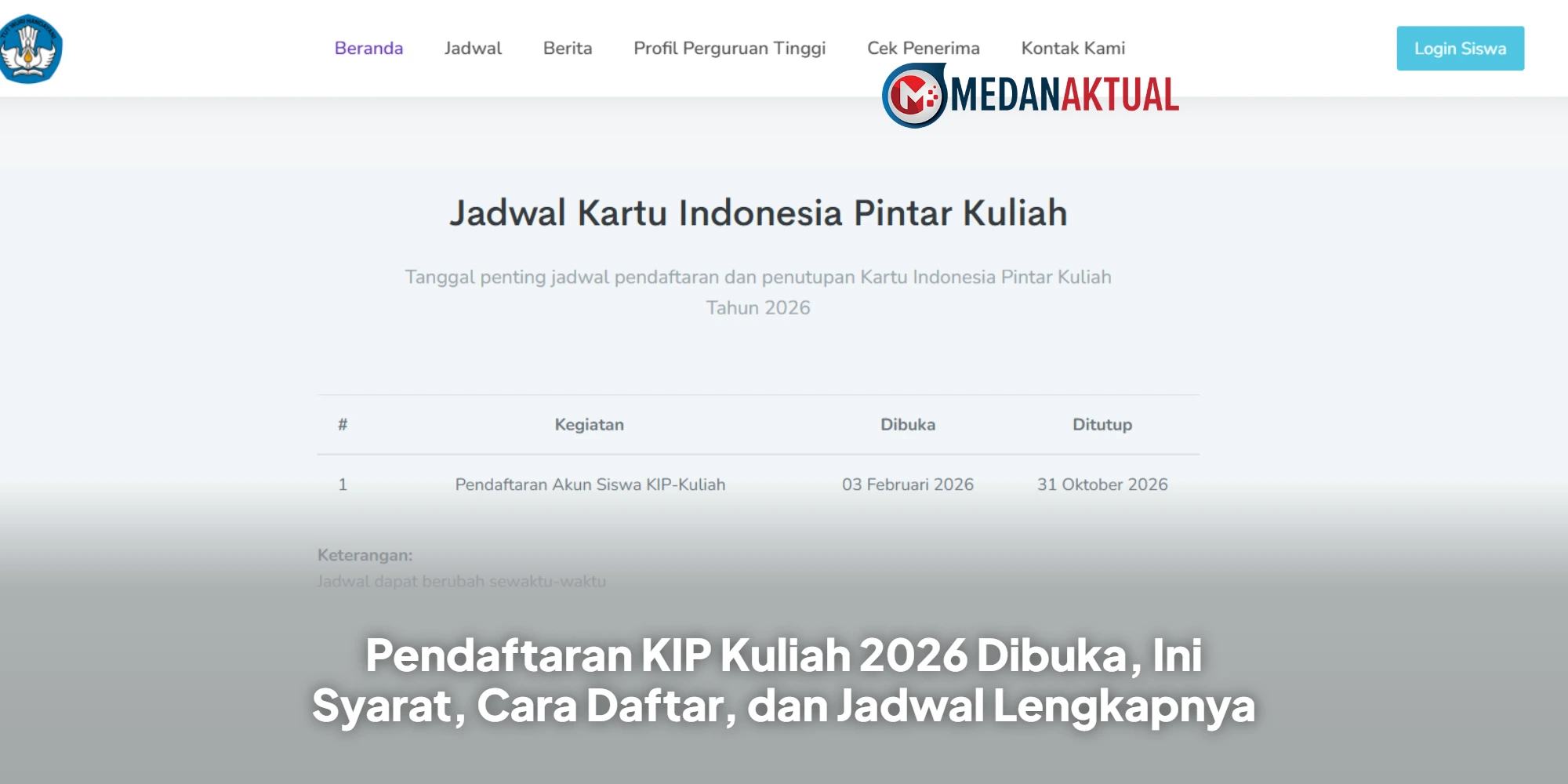 • Jadwal Pendaftaran KIP Kuliah 2026