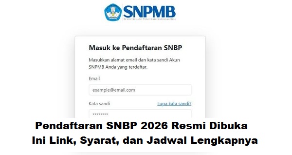 Pendaftaran Seleksi Nasional Berdasarkan Prestasi (SNBP) 2026 resmi dimulai pada hari Selasa, 3 Februari 2026, tepat pukul 15.00 WIB.