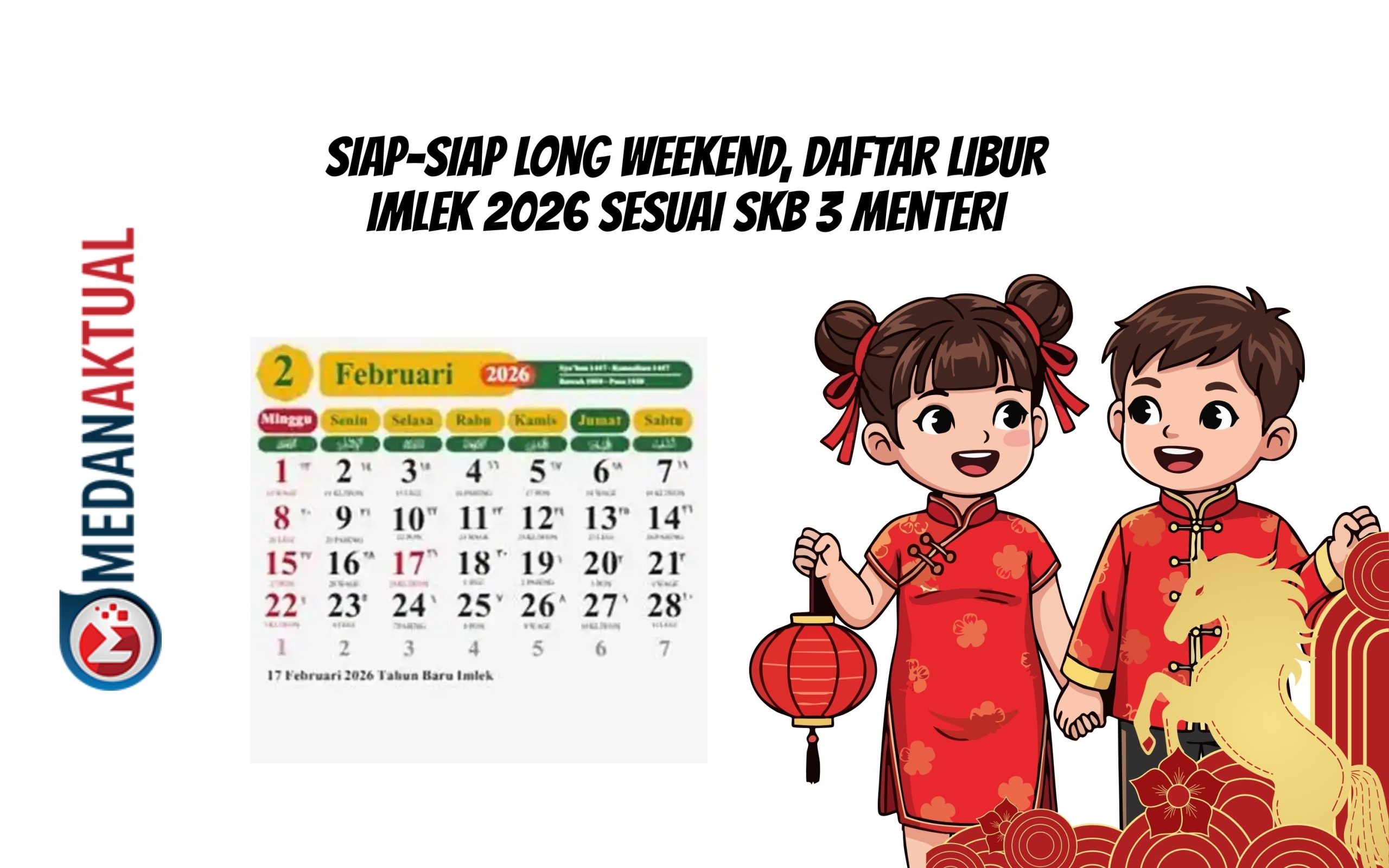 Kabar gembira bulan Februari 2026 terdapat long Weekend. Hal ini berkaiitan dengan libur Imlek 2026 dimana perayaan Imlek pada hari Selasa, 17 Februari 2026.