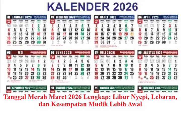 Tanggal merah Maret 2026 menjadi informasi penting yang banyak dicari masyarakat Indonesia, terutama menjelang momen libur panjang. Pada bulan ini terdapat beberapa hari libur nasional dan cuti bersama yang berdekatan, yaitu perayaan Hari Suci Nyepi 2026 dan Hari Raya Idul Fitri 1447 Hijriah. Karena jadwal kedua hari besar tersebut saling berdekatan, masyarakat berkesempatan menikmati libur panjang hingga tujuh hari berturut-turut.