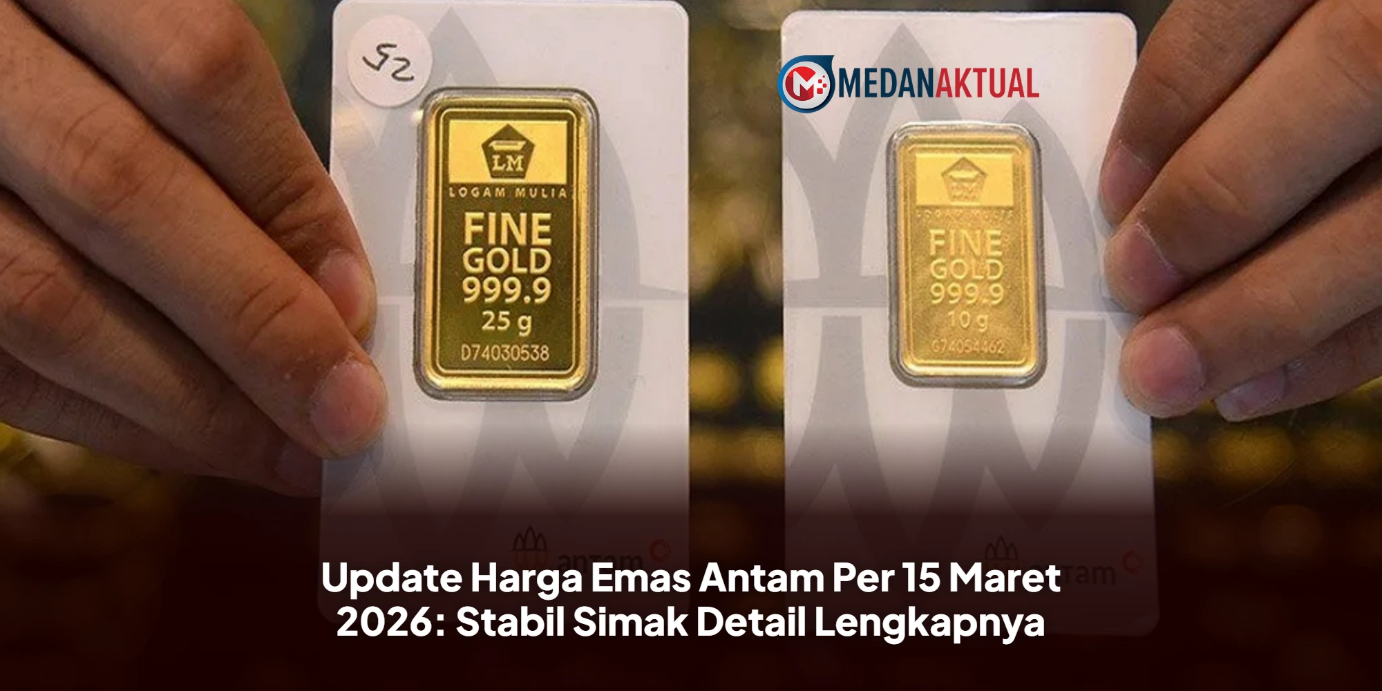 Harga emas batangan Antam pada hari Minggu, 15 Maret 2026, berada di level Rp 2.997.000 per gram, tidak berubah (stagnan) dibandingkan dengan harga pada hari Sabtu sebelumnya.