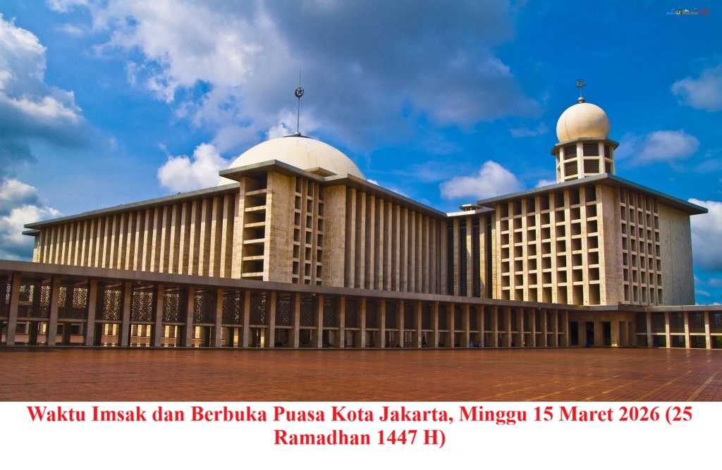 Pada hari Minggu, 15 Maret 2026, umat Muslim di Kota Jakarta menjalankan ibadah puasa hari ke-25 di bulan Ramadhan 1447 Hijriah. Waktu berbuka puasa ditandai dengan berkumandangnya adzan Maghrib, yang menandakan berakhirnya puasa setelah menahan lapar dan dahaga sejak terbit fajar.